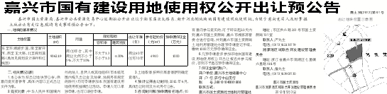 5.咨询时间和预申请报名地点:如有意向参与竞买的,可于即日起20天内到嘉兴市国土资源局、嘉兴市湘家荡管委会进行咨询,并到嘉兴市国土资源局土地利用管理处办理预申请登记手续,缴纳1000万元预申请保证金。