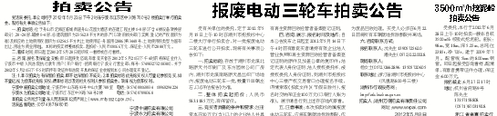 五、注意事项:本次拍卖标的属报废电动三轮车,应将车辆就地拆除割裂,作为废品回收处理。买受人必须在6月22日前将所有车辆就地拆除割裂并离场。