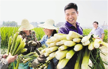 5月7日,缙云县大棚茭白抢鲜上市,田间收购价达每公斤6元,目前该合作社每天有10至20吨的茭白销往杭州温州等地。 报道组 许小峰 朱映归 摄