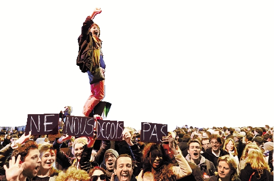 5月6日,法国社会党支持者在首都巴黎庆祝奥朗德在总统选举第二轮投票中获胜。 新华社发