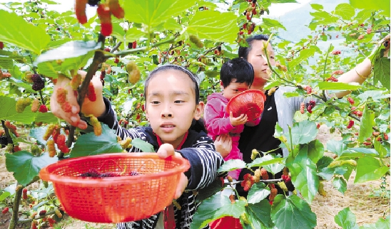 这几天,文成县好日子精品果园里热闹非凡,一年一度的桑葚采摘开始了,农户忙翻天,游客乐翻天。两年前,农户赵超明与旅行社联手,引进台湾大果桑、长果桑等一万多株名优果桑,发展桑葚基地100多亩。