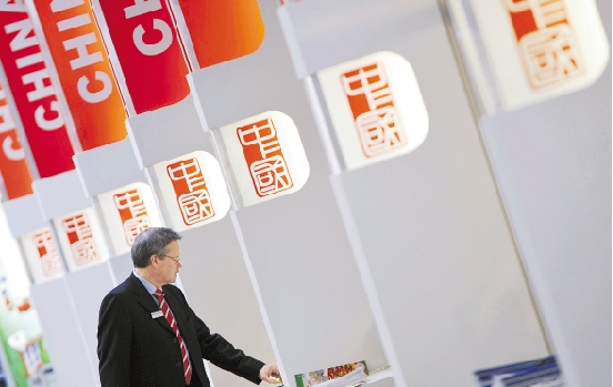 一名观众在德国汉诺威工博会上的中国展台参观。 新华社发