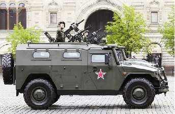 5月9日,“虎”式装甲越野车驶过莫斯科红场。 新华社发