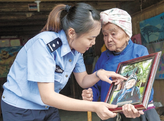 5月12日,景宁县公安局“访问民情”工作组来到郑坑乡吴村,共产党员、女警员张小晔为98岁的省健康老人雷丑娘讲故事,逗得老人直乐呵。