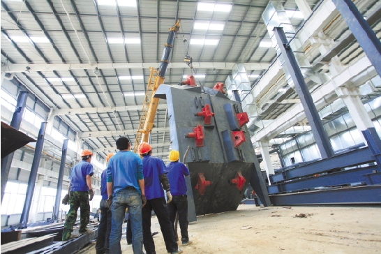 工人们正在安装设备。 通讯员 吴仁斌 摄