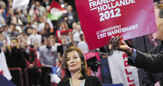 4月29日,法国巴黎,奥朗德在贝尔西体育馆举行竞选活动。图为瓦莱丽在现场。 视野网供图
