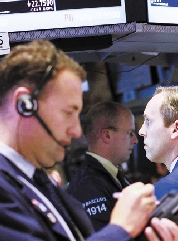 5月8日,交易员在美国纽约证券交易所内工作。由于投资者对欧元区的前景感到担忧,8日纽约股市三大股指下跌。 新华社发