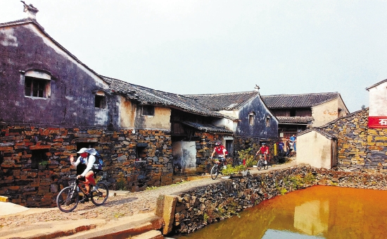 山地自行车手穿行许家山村,带来了几分时尚的气息。