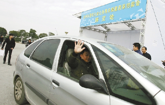一位拍得车辆的市民,开着“新”车驶离车辆移交处。蒋超 摄