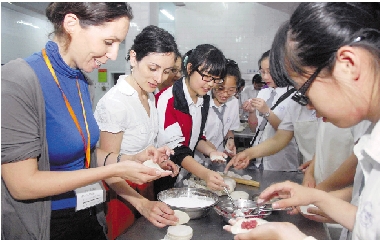 5月14日下午,11位来自以色列的大学生走进海宁市宏达学校,与中国学生一起学习包饺子,感受着中国传统饮食文化。 海宁日报记者 王超英 摄