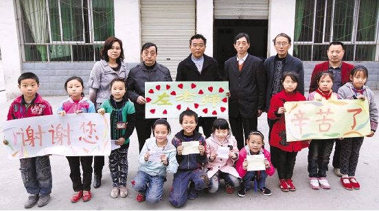 四川广元剑阁鹤龄小学的师生为左老师送上祝福。 赵颖硕 摄
