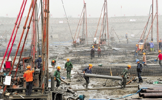 昨日,钱江枢纽闸站工程工地一片繁忙,建设者正在浇筑混凝土桩等作业。这一工程是钱塘江灌区的重点水利工程,建成后将满足钱江世纪城和萧山城区的防洪排涝需要,改善生态环境。