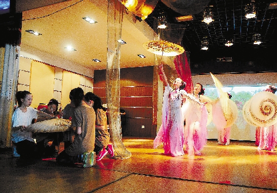 浙江古陶瓷艺术欣赏稚儿雅集近日在杭州大关小学举行。它以浙江陶瓷发展史为线索,以绘画、舞蹈、吟唱等形式表达。图为学生们手执绘有各种陶纹的阳伞起舞。 连国庆 摄
