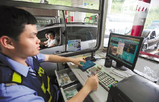 5月15日,一辆汽车在甬台温高速瑞安出口处缴费。当天起,我省高速公路实施按每辆车的实际行驶路径收费。 瑞安日报记者 庄颖昶 摄