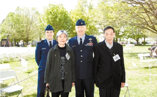 贺绍英与廖明发在纪念活动现场与美国空军学院巴克勒教授合影。