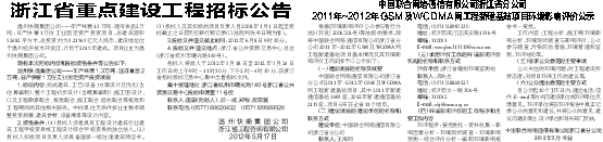 2011年~2012年GSM及WCDMA网工程新建基站项目环境影响评价公示