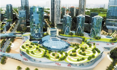 “一核”即临湖设置的市民广场与商业、商务办公、娱乐混合区。