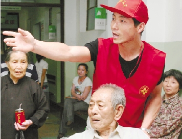 黄海群是台州医院图书馆的一名普通职工,已有20年党龄。从2006年开始,他利用自己的休息时间,坚持6年为病友提供便民服务。图为黄海群正在为行动不便的病友提供服务。 通讯员 方永乐 摄