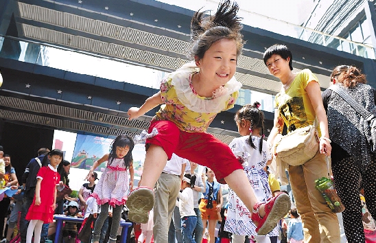 5月27日,杭州滨江区数千名小朋友参加迎“六一”亲子大联动社会服务活动。 李晓军 摄
