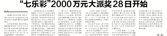经财政部批准,福利彩票全国联销品牌玩法“七乐彩”从5月28日(第2012061期)起开展2000万元大派奖活动。这是“七乐彩”游戏自2007年1月上市以来,加奖金额最高的一次派送活动。