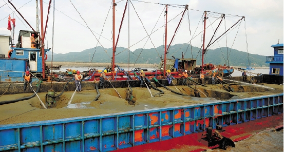 日前,舟山定海区金塘木岙集装箱物流基地围垦区内,插排船正在抓紧进行排水板插打作业,预计六月底可完成排水板插打施工。定海区金塘木岙集装箱物流基地项目是舟山市“十二五”规划重点项目之一,它的建设将加快推进舟山物流岛建设、新区建设及金塘岛开发建设。 本报记者 梁臻 通讯员 张伦 姚峰 摄 |