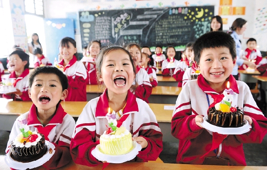 5月28日,余姚市国税局丈亭分局为农民工子女举行集体生日会。 陈斌荣 摄