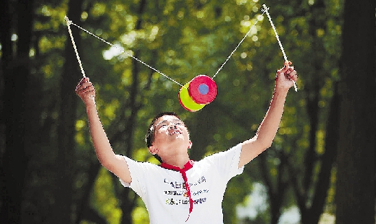 5月29日,桐乡虎啸中心小学学生利用课间时间参与阳光体育活动。舞空竹、跳健身操、踢毽子等民间传统游戏成了学生们踊跃参加的体育项目。