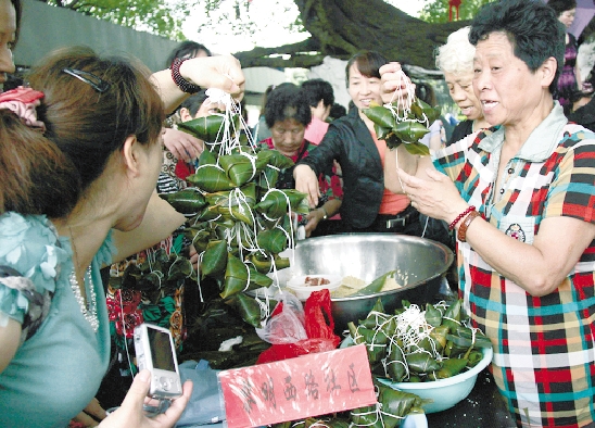 | 王 季 摄影报道 在端午节即将来临之际,一场别开生面的包粽子擂台赛,5月25日在温州市区华盖广场举行。五马街道在这举办的包粽子比赛,共有17个社区代表队的街坊邻里上阵,大家洗箬叶、调馅料,个个都是包粽子的“高手”。现场上百居民聚集在这为参赛选手们鼓劲加油。据悉,赛后社区工作人员将比赛中大家包好的棕子,送到了福利院及生活困难家庭。 社区赛包粽 |