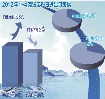 2012年1-4月浙江对日进出口贸易