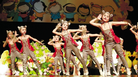 6月1日,杭州市新华实验幼托园千名儿童举行庆“六一”活动,孩子们表演了童话剧、舞蹈、合唱等节目。 魏志阳 摄