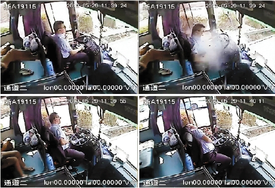 吴斌遭飞来铁块击中,忍痛安全停车挽救乘客的视频截图。 新华社发