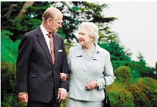 女王和亲王2007年在英国汉普郡布罗德兰兹庄园。 新华社发