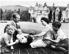 女王(右二)和菲利普亲王(左二)、查尔斯王子(右一)、安妮公主(左一)及安德鲁王子(中)1960年9月8日的资料照片。 新华社发