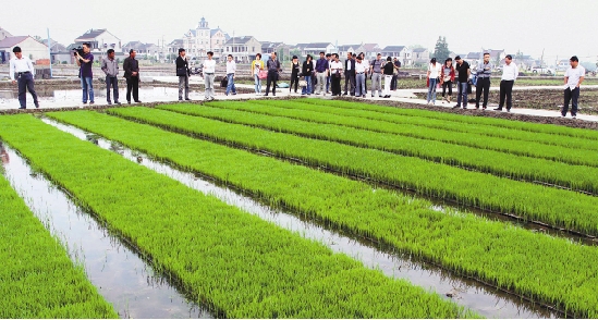 嘉善县农技专家和种植大户日前来到该县陶庄镇汾湖村参观水稻育秧中心。今年该县将建设6个高标准育秧中心和3个烘干中心。 胡凌翔 倪杨燕 王琼毓 摄