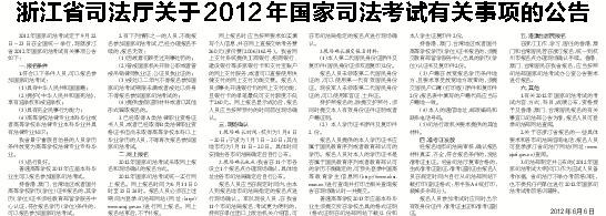 浙江省司法厅关于2012年国家司法考试有关事项的公告