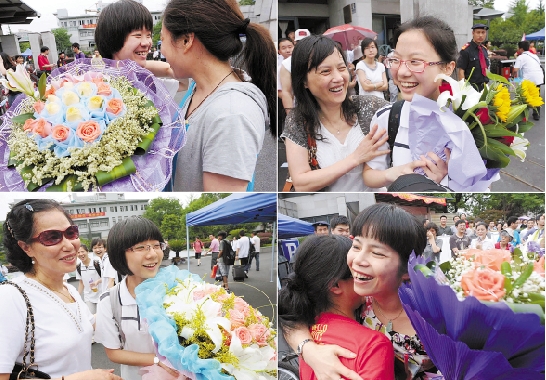 走出考场 鲜花相迎