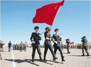 6月9日,在塔吉克斯坦胡占德市“乔鲁赫-代龙”靶场,中国参演官兵接受检阅。 新华社记者 李翔 摄