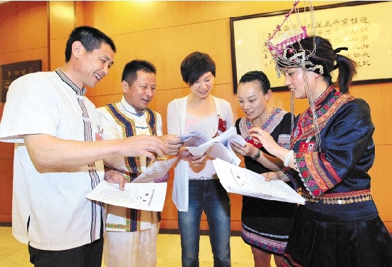 6月9日,丽水市代表团的少数民族代表欢聚在一起,探讨如何将省第十三次党代会的精神与家乡实际相结合,发展山乡经济。