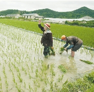 插秧:大约一个月后,秧苗要移栽。这时,农村的田野会变得很热闹。女人们拿着小板凳,坐在秧苗田里拔秧。而男人们,则一字排开,在平整好的水田里,以最快的速度把秧苗插播下去。这时,动作快、排得齐的种田能手,会赢得很多赞扬声。几千年来,插秧技术是评判庄稼汉是否能干的一项重要标准。而农村的女人们,也往往会倾心于种田能手。