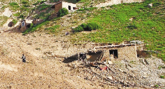 6月12日,在阿富汗北部巴格兰省布尔卡地区,一名男子从山体滑坡中毁坏的房屋旁走过。阿富汗北部巴格兰省官员12日说,前一天地震引发的山体滑坡掩埋一座村庄,至少70人可能丧生。 新华社发