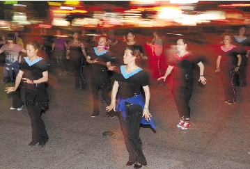 5月23日,舟山岱山文化广场上,市民在夜幕下跳起了排舞。据市民介绍,每天傍晚,近千市民在这里锻炼身体,跳交谊舞、健身舞、排舞等。