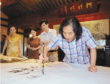王冬龄挥毫。 本报记者 胡元勇 摄