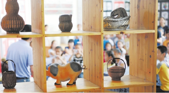 东阳市吴宁五校近日邀请竹编类国家级非遗传承人、省工艺美术大师何福礼来到学校,手把手教小学生竹编技法。 东阳日报记者 包康轩 摄