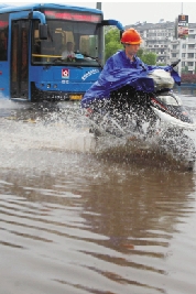6月17日,绍兴市气象局发布暴雨蓝色预警,绍兴市区一些低洼地带和街道出现积水。 梁永锋 摄