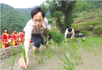 春耕时节,台回山的梯田如链似带,从山脚盘绕到山顶。在这优美的田园风光中,“加油!加油!”,一阵阵热闹的腰鼓声和加油声,从满目青翠的台回山上传来。 日前,开化县长虹乡在桃源村台回山自然村举行“关注农村、体验农事”迎“七一”台回山插秧比赛。来自县纪委、林业局、计生局、机关事务管理局、长虹乡政府、长河碳业等6支代表队参加了比赛。 据了解,此次活动是长虹乡唱响旅游兴乡、打造省级摄影基地、推介“江南布达拉宫”——台回山以及庆祝党的生日的一次盛大活动,让大家在工作之余能走进农村、体验农事。 “已经有十多年没干过农活了,通过今天这样的比赛,我又重新找回了插秧种田的乐趣,同时也深切感受到农民的辛劳。今后要更多地走进农村、关注农业、关心农民。”廖晓飞说。 县委报道组 余问清 徐祝安 |