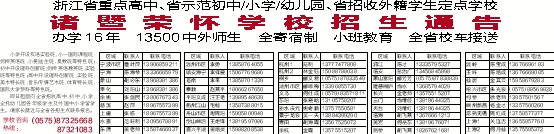 浙江省重点高中、省示范初中/小学/幼儿园、省招收外籍学生定点学校