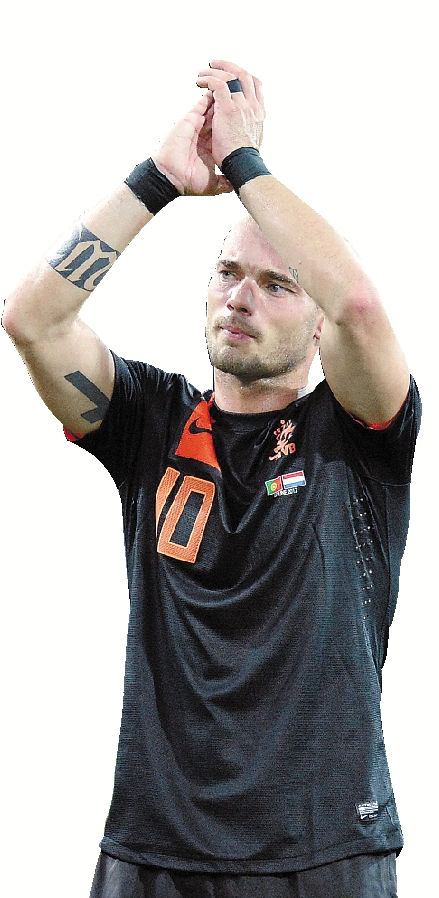 荷兰队球员斯内德在赛后向观众致意。 新华社发