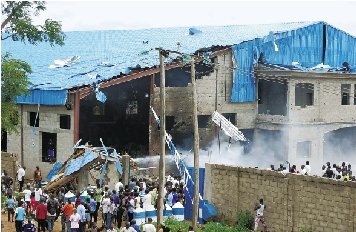 6月17日,人们聚集在尼日利亚北部卡杜纳州的爆炸现场。尼日利亚北部卡杜纳州17日发生多起爆炸袭击事件,造成至少16人死亡,40余人受伤。卡杜纳州政府决定立即在该州实施24小时宵禁。 新华社发