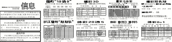 更多信息查询:浙江体育彩票网 www.zjlottery.com。