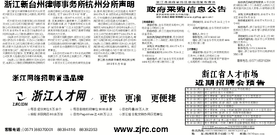 | 7月8日(周日) | 2012年浙江省第三届中高级人才专场招聘会 |